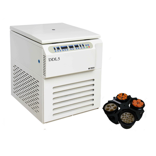 Низкоскоростная поворотная центрифуга объемом 5000 об/мин с охлаждаемой центрифугой 4x800 мл с охлаждаемым ротором DDL5 с адаптерами для пробирок объемом 5/7/10/15/50 мл.