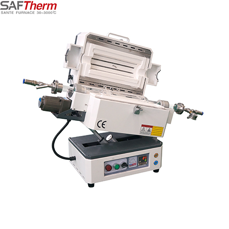 Вращающаяся трубчатая печь состоит из системы нагрева, комплекта автоматических поворотных механизмов и механизма наклона корпуса печи. Трубу печи можно поворачивать на 360 °, скорость можно регулировать, а температурное поле является равномерным. Корпус печи можно наклонять на 15 °, что облегчает ввод и вывод материалов.
